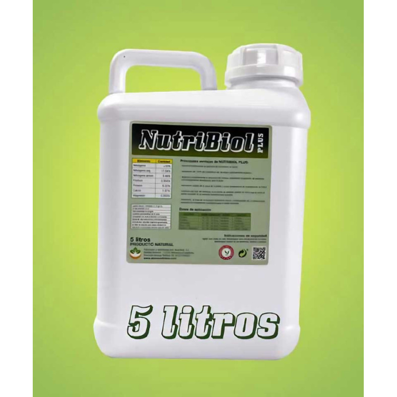 NUTRIBIOL. Estiercol tradicional fermentado de forma natural por bacterias, dando coma resultado un excelente abono Liquide ORGÁNICO Y BIOLÓGICO de origen animal. Actúa coma bioestimulante de larga duración. Favorece la formación de nuevas raíces, elimina el estres y fortalece el sistema inmunológico de las plantas. Mejora la productividad y calidad en cualquier cultivo que se aplique.